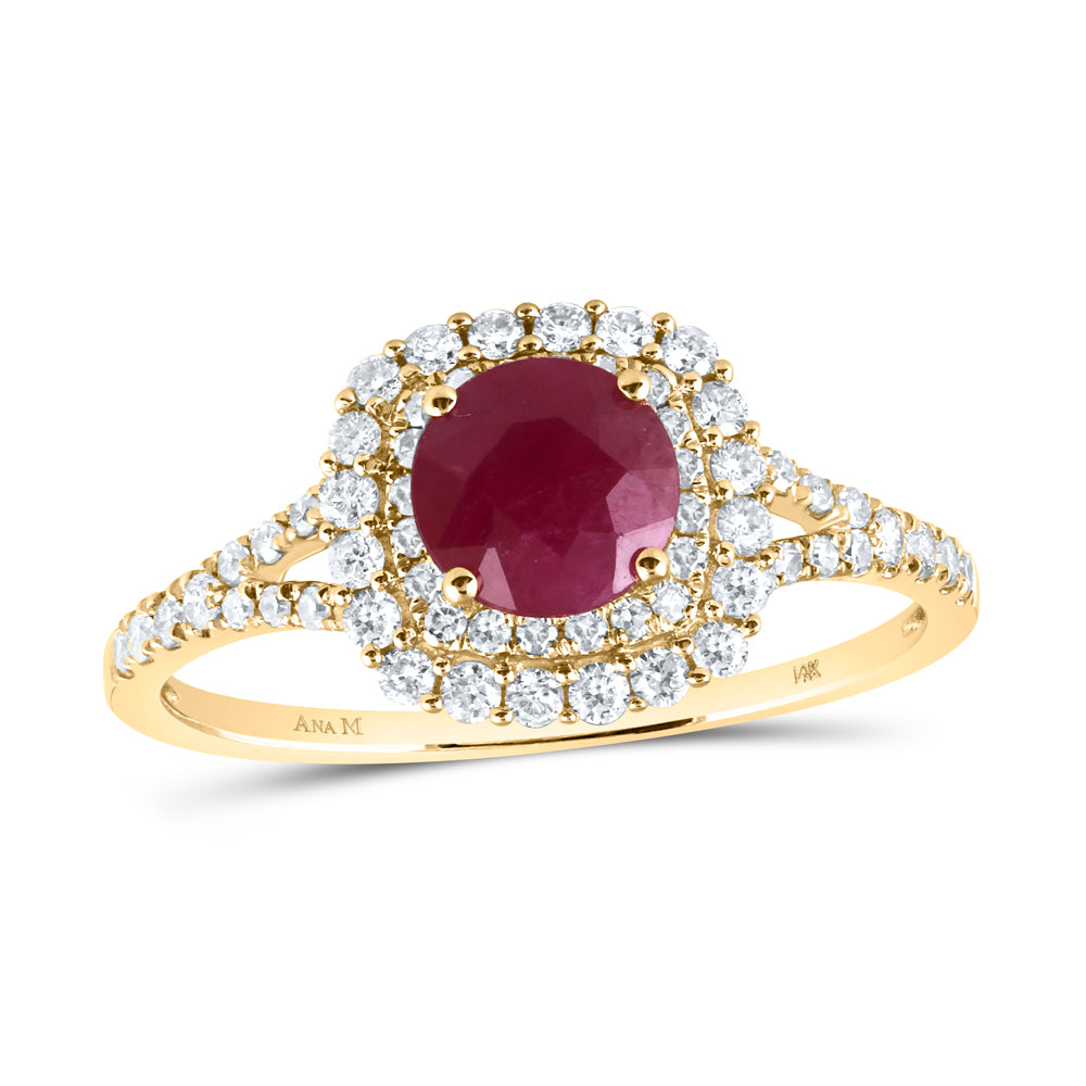 14kt Yellow Gold Womens Round Ruby Halo Bridal Wedding Engagement Ring 1-3/8 Cttw