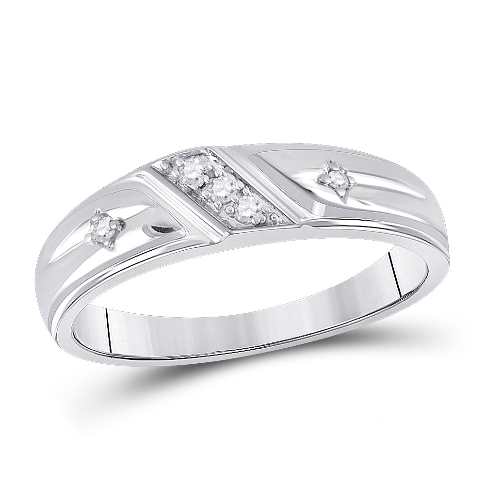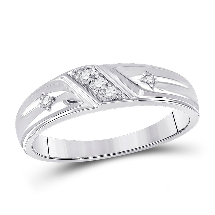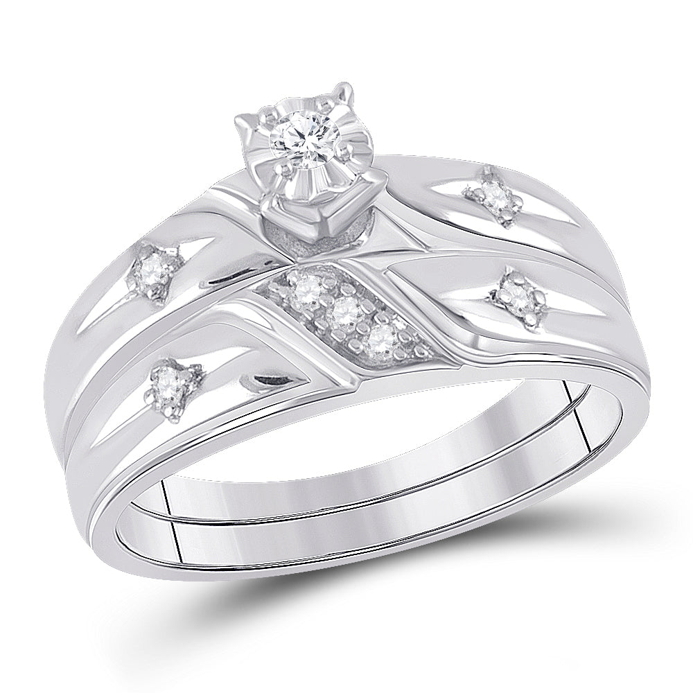 Sterling Silver Round Diamond Cross His & Hers Matching Trio Wedding Ring Set 1/6 Cttw