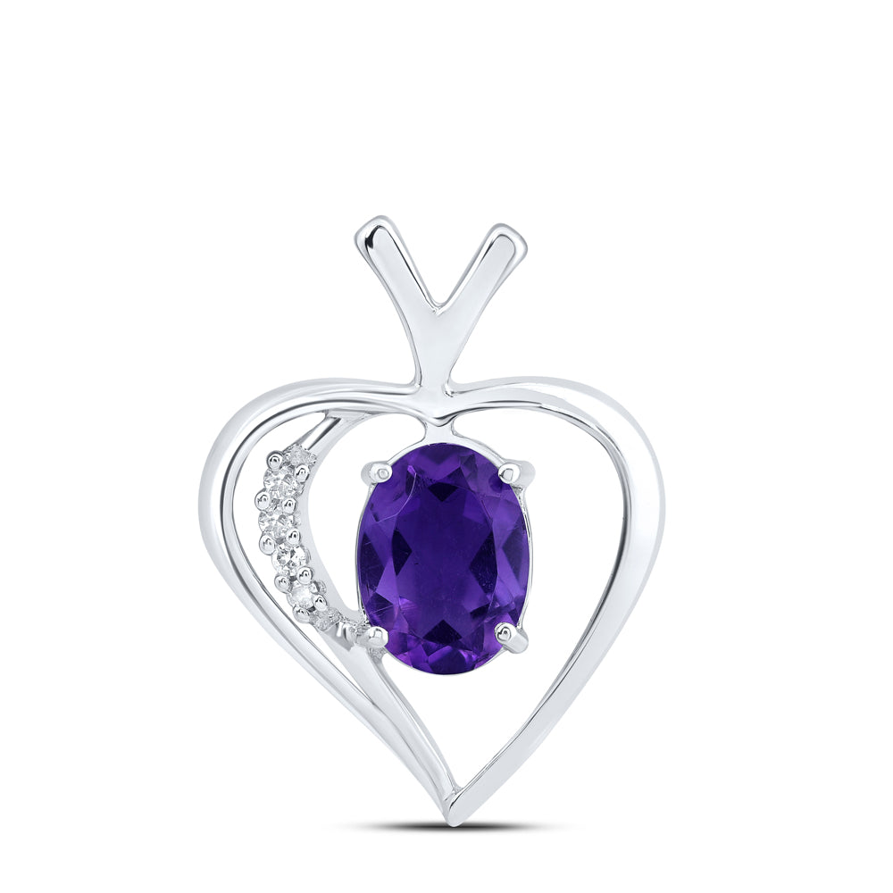 Sterling Silver Womens Round Amethyst Diamond Heart Pendant 3/4 Cttw