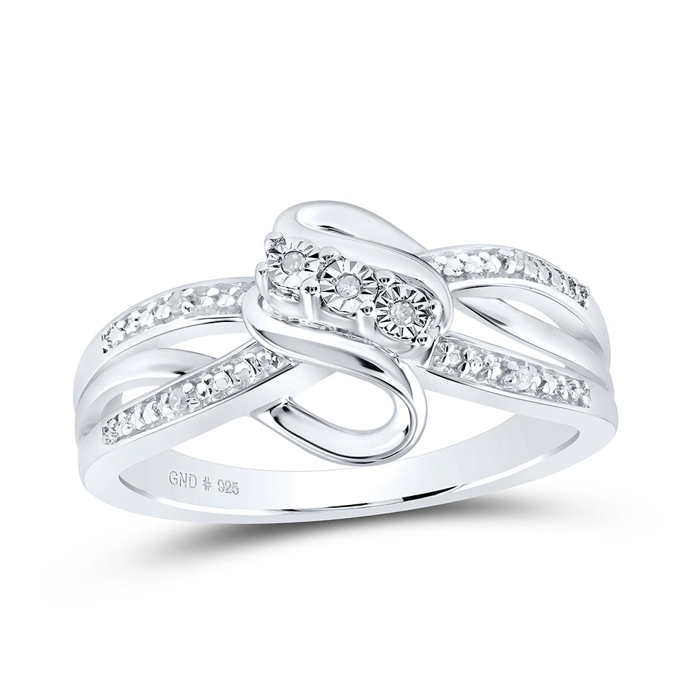 Sterling Silver Womens Round Diamond 3-stone Bridal Wedding Engagement Ring .03 Cttw