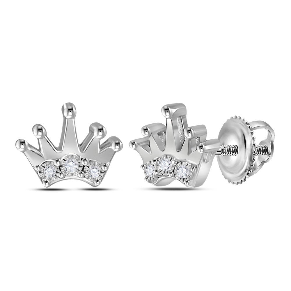 Sterling Silver Womens Round Diamond Crown Fashion Earrings 1/20 Cttw
